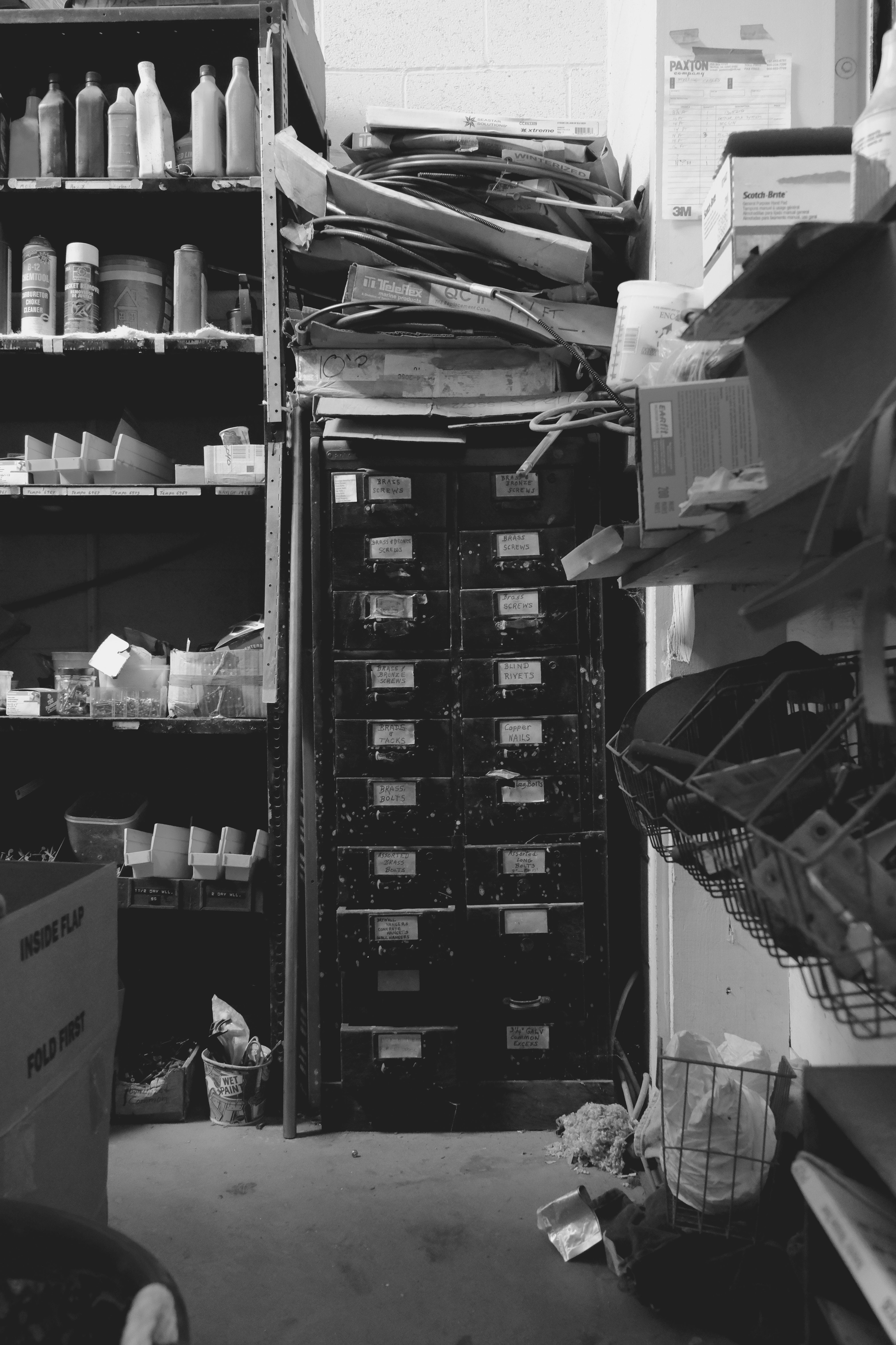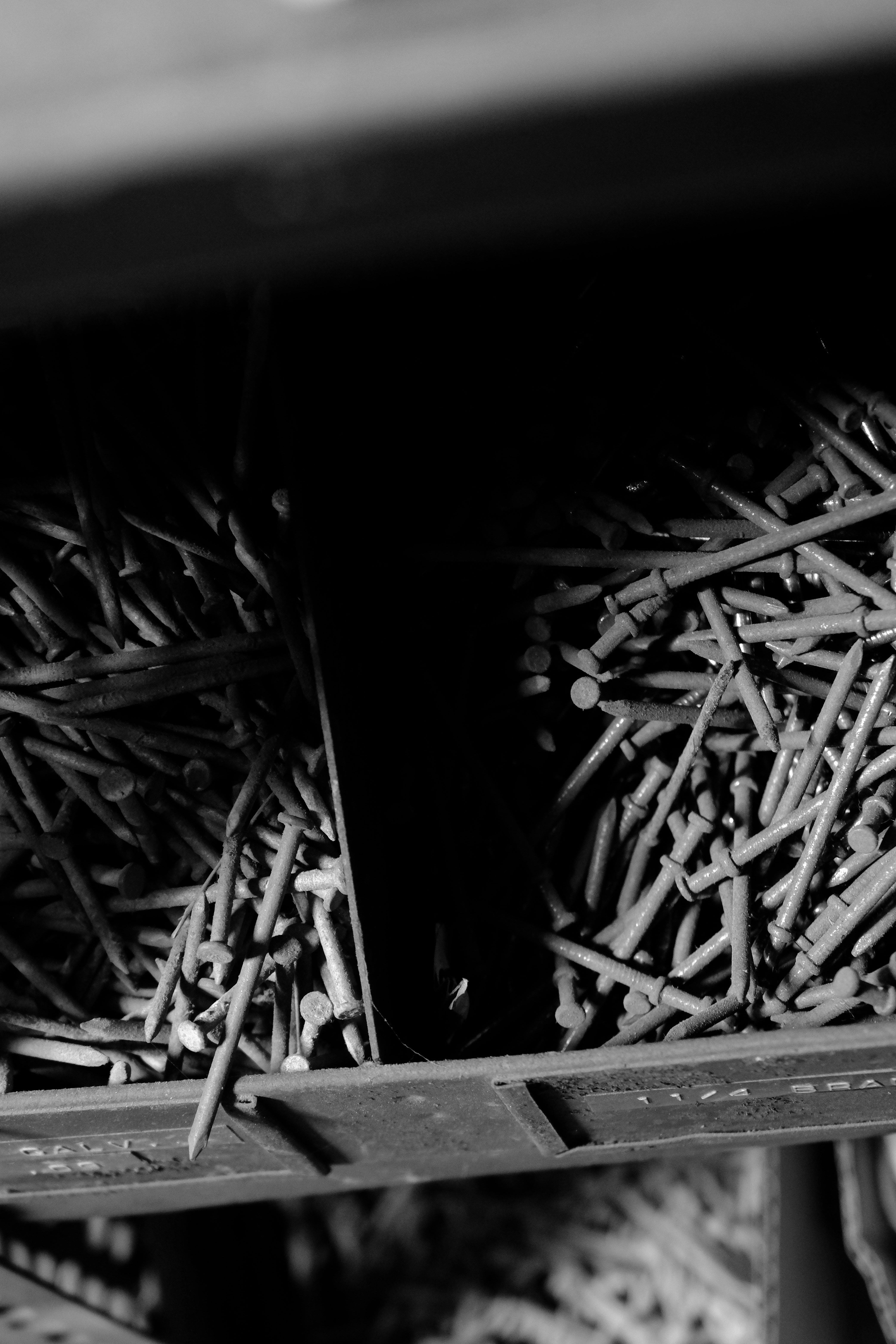 Inside the shop, I found tools that had been put down decades ago, that lay waiting to be picked up again and be made useful. Cabinets and boxes were full of parts and diagrams. Pounds of boat nails and wood screws were stacked in bins and covered in dust from years of neglect.